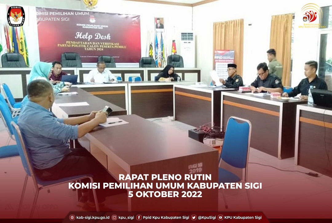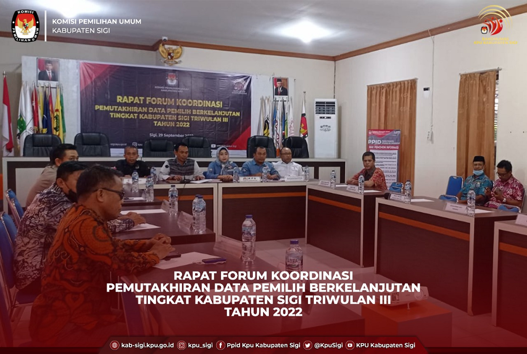Sigi, kab-sigi.kpu.go.id -Komisi Pemilihan Umum (KPU) Kabupaten Sigi menggelar Rapat Forum Pemutakhiran Data Pemilih Berkelanjutan di tingkat Kabupaten Sigi Triwulan III Tahun 2022, di ruang pertemuan KPU Kabupaten Sigi, Kamis (29/9/2022).