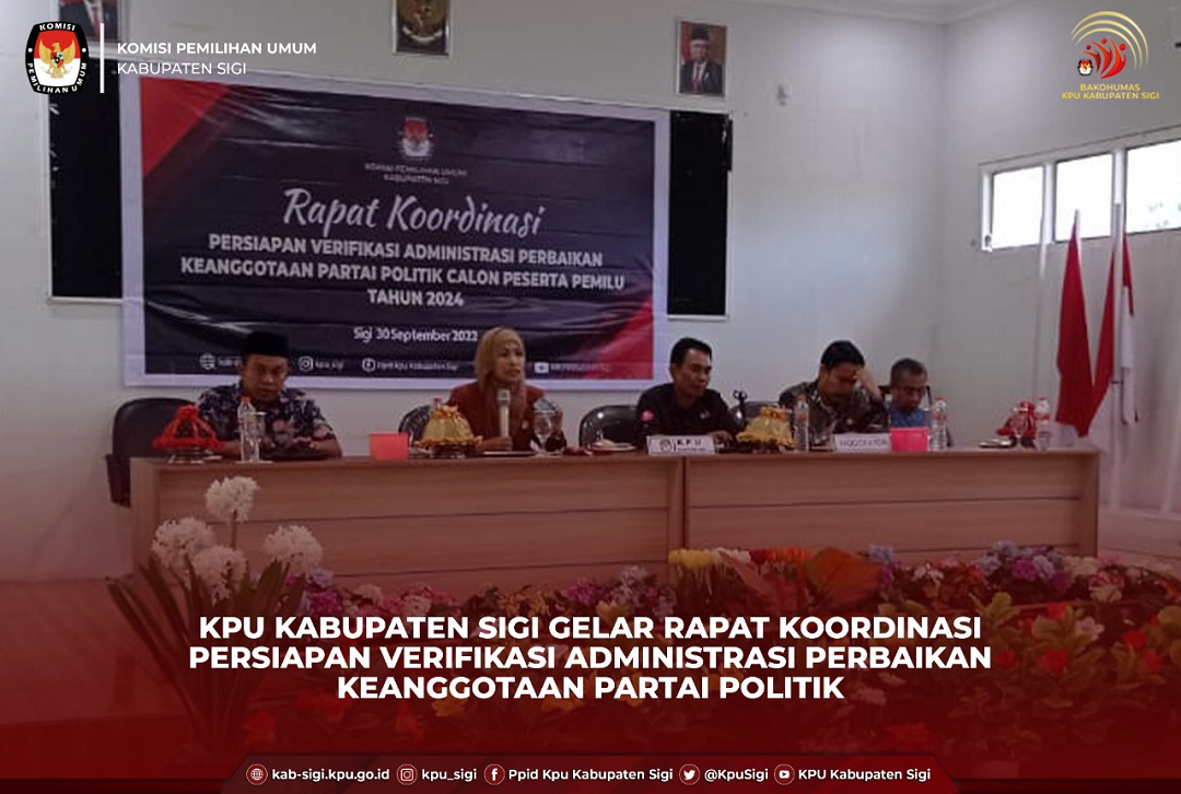 “Rapat Forum koordinasi Pemutakhiran Data Pemilih Berkelanjutan Triwulan III Tahun 2022 ini merupakan rapat terakhir dilaksanakan oleh KPU Kabupaten Sigi, karena pada bulan Oktober tahun 2022 sudah masuk tahapan Pemutakhiran Data Pemilih pada Pemilu tahun 2024,” Ucap Plh.Ketua KPU Sigi, Hairil, SH, saat membuka kegiatan.