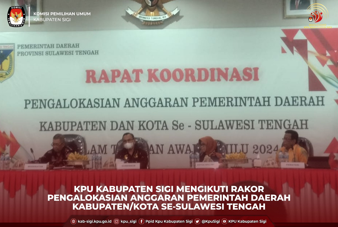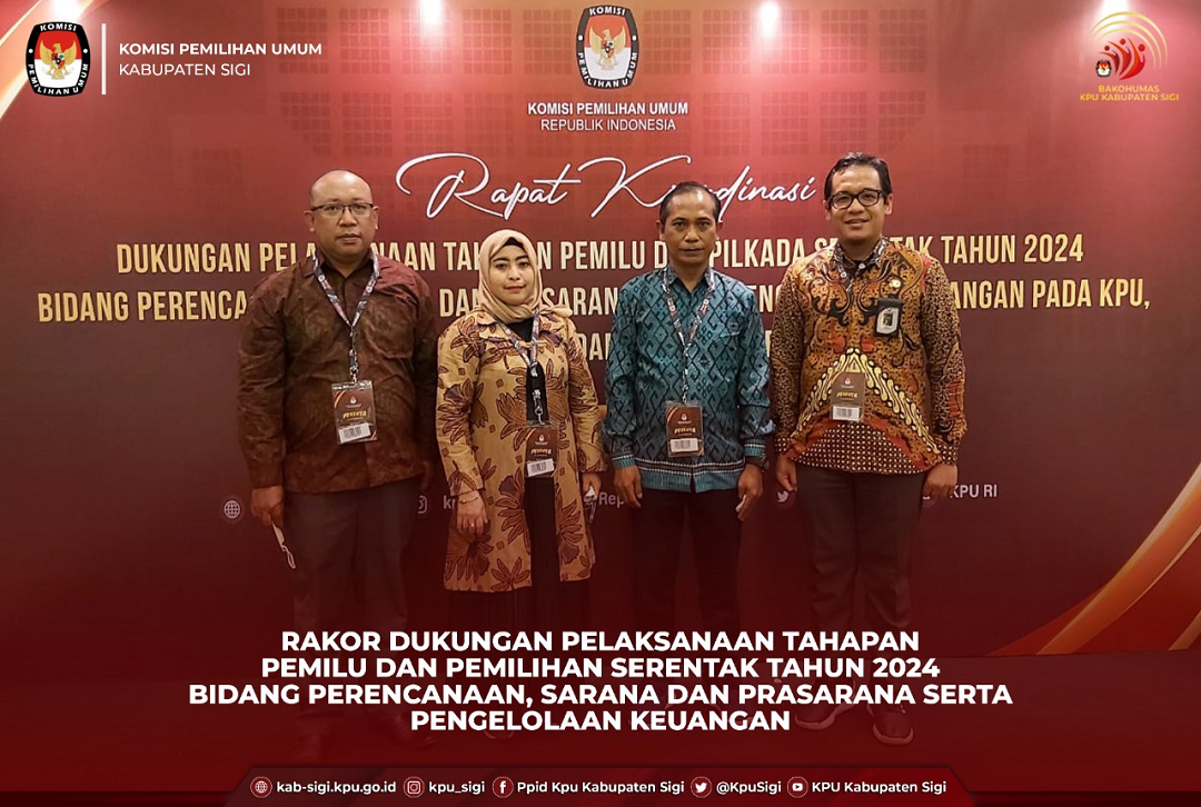 Hadir dalam rakor Ketua KPU Kabupaten Sigi Soleman, Anggota KPU Kabupaten Sigi Rosnawati, Kasubag Keuangan Umum dan Logistik Sasli dan Kasubag Perencanaan Data dan Informasi Suyudin. Kegiatan ini dihadiri lebih kurang 2.200 peserta yang berasal dari KPU Provinsi/KIP Aceh dan KPU/KIP Kabupaten/Kota se-Indonesia.