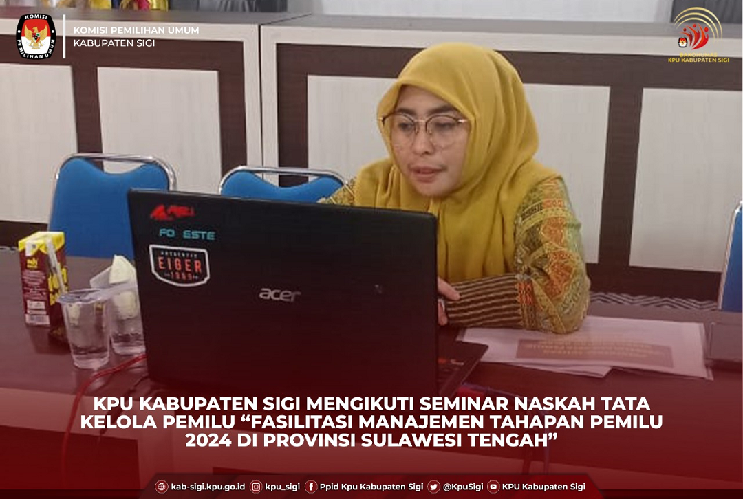 Sigi, kab-sigi.kpu.go.id - Komisi Pemilihan Umum Kabupaten Sigi mengikuti Kegiatan Call For Paper KPU Provinsi Sulawesi Tengah dengan Tema "Fasilitasi Manajemen Tahapan Pemilu 2024 di Provinsi Sulawesi Tengah" secara daring, Jumat (15/7). Kegiatan Seminar Naskah Tata Kelola Pemilu di buka oleh Kepala Puslitbang KPU RI Lucky FM, menyampaikan bahwa kegiatan Seminar yang dilaksanakan oleh KPU Provinsi Sulawesi Tengah sangat baik, dan KPU RI sangat mendukung dan pada intinya bahwa dalam fasilitasi manajemen tahapan pemilu tahun 2024, kita menyepakati bahwa tata kelola pemilu di Indonesia itu sudah cukup banyak pengalaman panjang seperti yang kita rasakan sekarang. Dalam kesempatan yang sama, Anggota KPU Provinsi Sulawesi Tengah Sahran Raden menyampaikan hasil dari seminar naskah tata kelola pemilu dari 6 (Enam) tulisan akan dibuatkan buku pemilu Sulawesi Tengah yang rencana bulan Agustus atau September akan publikasikan, dan nama enam orang penulis akan tercatat dalam sejarah pemilu di Sulawesi Tengah. Dari ke enam penulis yakni 1. Mahfud AR.Kambay ( Anggota KPU Kabupaten Donggala) judul tulisan " Pola Relasi KPU dan Bawaslu Dari Konflik Menuju Pencegahan Pelanggaran Pada Pemilu 2024". 2. Cherly Trisna Ilyas (Kasubag Partisipasi dan Hupmas Sekretariat KPU Provinsi Sulawesi Tengah) judul tulisan " Analisis Yuridis Kewajiban Partai Politik Dalam Menyampaikan Laporan Dana Kampanye Pada Pemilu tahun 2019" 3. Riono Kansi (Anggota KPU Kabupaten Banggai Kepulauan) Judul tulisan " Fasilitasi Manajemen Tahapan Pemilu 2024 di Provinsi Sulawesi Tengah" 4. Rosnawati (Anggota KPU Kabupaten Sigi) Judul tulisan " Pengelolaan Data Pemilih Berkelanjutan Dalam Menghadapi Bonus Demografi" 5. Ovelio Layuk ( Kasubag Keuangan, Umum dan Logistik Kabupaten Toli-toli) Judul tulisan " Pelibatan Masyarakat Suku Terasing Dalam Politik Elektoral Sebagai Bentuk Perwujudan Demokrasi Substansial". 6. Willianita Selviana Pangetty ( Anggota KPU Kabupaten Poso) Judul tulisan " Partisipasi Pemilih dan Evektifitas Anggaran Sosialisasi Pemilu 2019 (Study kasus pada KPU Kabupaten Poso)". Kegiatan Seminar di moderatori Rizal Jasman selaku Kabag Hukum dan SDM KPU Provinsi Sulawesi Tengah, dengan Panelis yakni Dr.Sahran Raden, Samsul Gafur, dan Dr.Muthadin Dg.Mustafa. #KPUMelayani #PemiluSerentak2024