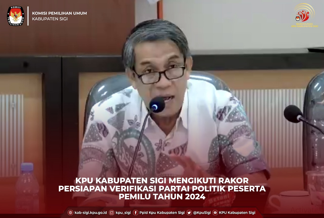 Sigi, kab-sigi.kpu.go.id- KPU Kabupaten Sigi menghadiri Rapat koordinasi persiapan verifikasi partai politik pada Pemilu tahun 2024 secara daring yang dilaksanakan oleh KPU Provinsi Sulawesi Tengah, Selasa (12/7). Ketua KPU Provinsi Sulawesi Tengah Nisbah dalam arahannya sekaligus membuka rapat koordinasi, menyampaikan pentingnya kegiatan persiapan menjelang tahapan pendaftaran dan verifikasi partai politik untuk menyamakan persepsi dan pemahaman tentang teknis pelaksanaan baik itu dalam verifikasi administrasi maupun verifikasi faktual nantinya. Olehnya diharapkan kepada seluruh peserta rakor KPU kabupaten/Kota Se Sulawesi Tengah untuk serius mengikuti materi yang akan dibawakan oleh narasumber pada hari ini. "Tutupnya". Anggota KPU Provinsi Sulawesi Tengah Syamsul memberikan materi tahapan verifikasi partai politik pada pemilu tahun 2024, dalam pemaparannya mengatakan bahwa untuk tahapan pendaftaran partai politik peserta pemilu dan akses akun dan penginputan di aplikasi Sistem Informasi Partai Politik (Sipol) semua berada pada kewenangan di KPU RI. Untuk KPU Provinsi dan KPU Kabupaten/Kota mempunyai tugas ditahapan verifikasi administrasi dan verifikasi faktual, diantaranya yang akan di verifikasi yakni kepengurusan partai politik pada tingkatan provinsi dan kabupaten/Kota, keterwakilan 30% kepengurusan perempuan, domisi kantor tetap parpol dan ke anggotaan parpol. "Ujar Syamsul". Rakor di ikuti oleh Anggota KPU Divisi Teknis Penyelenggara Pemilu Kabupaten/Kota, Para Kasubbag Teknis dan Hupmas Kabupaten/Kota dan Staf yang ditunjuk menjadi Operator Sipol Se Sulawesi Tengah. #KPUMelayani #PemiluSerentak2024