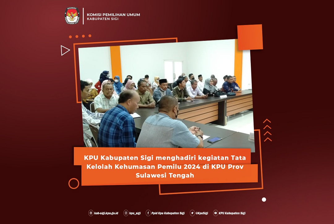 Sigi, Kab-sigi.kpu.go.id #TemanPemilih- Komisi Pemilihan Umum Kabupaten Sigi menghadiri kegiatan FGD penguatan hubungan antar lembaga dengan tema "Silaturahim dan Rapat koordinasi Peningkatan Kompetensi Tata Kelola Kehumasan KPU Provinsi dan KPU Kabupaten/Kota dalam pelaksanaan Pemilu Serentak 2024 di Kantor KPU Provinsi Sulawesi Tengah yang digelar secara Luring dan Daring, Jumat (10/6).
