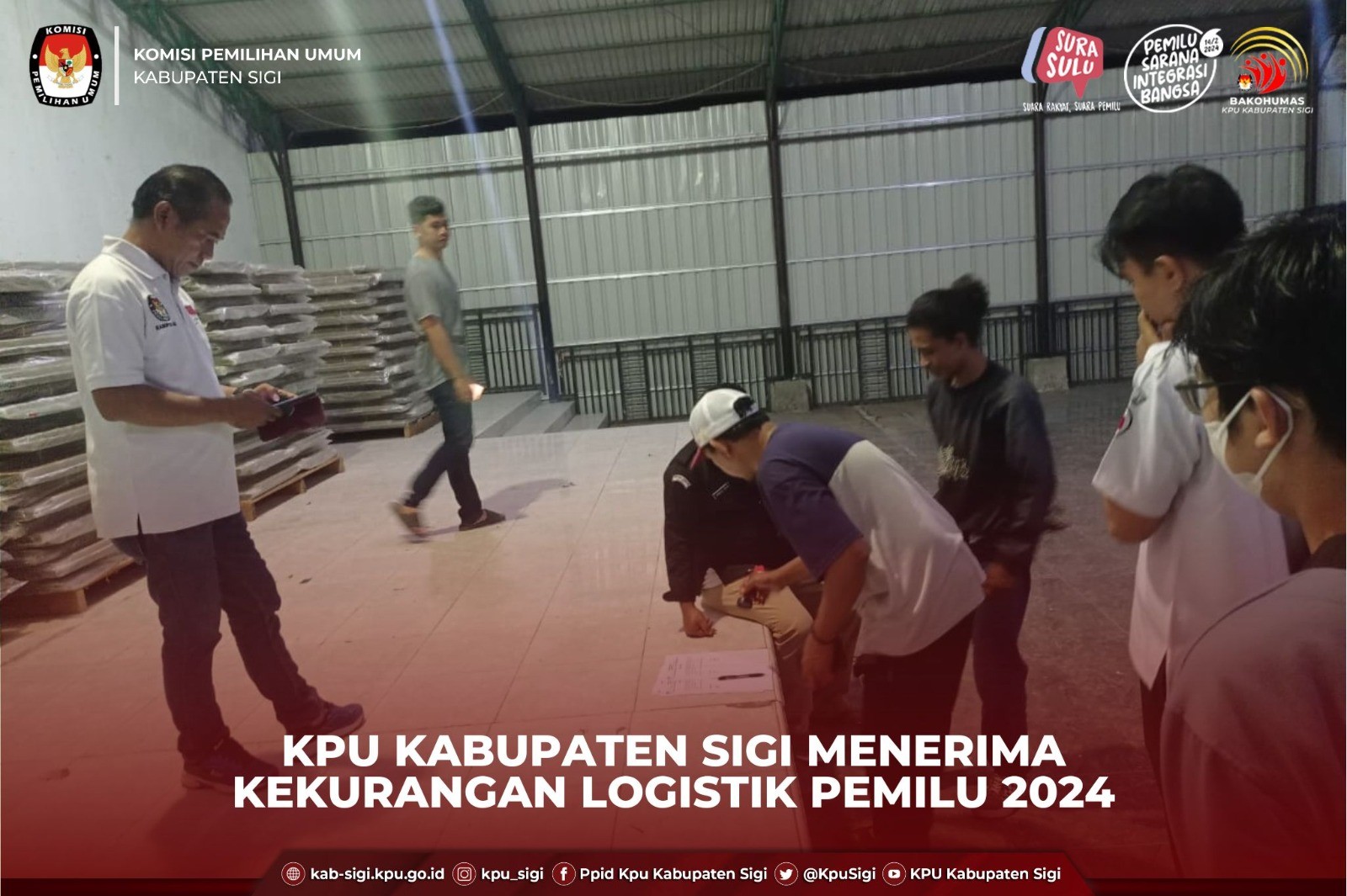Sigi, kab-sigi.kpu.go.id KPU Kabupaten Sigi pada tanggal 18 Oktober 2023 dinihari telah menerima kedatangan logistik Pemilu, berupa bilik suara di gudang logistik KPU Sigi di Desa Potoya Kecamatan Dolo, turut hadir dalam proses penerimaan bilik suara di gudang logistik, Ketua KPU Kabupaten Sigi, Ketua Bawaslu Kabupaten Sigi, perwakilan Polres Sigi, dan Kasubag KUL Kabupaten Sigi. Kepala Subbagian Keuangan, Umum dan Logistik KPU Kabupaten Sigi, Masdar menyatakan bahwa untuk tahap awal logistik yang masuk ke gudang logistik KPU Kabupaten Sigi sampai dengan tanggal 18 Oktober 2023 berupa bilik suara, jumlah bilik suara yang diterima oleh KPU Kabupaten Sigi dan telah tersimpan di gudang logistik sebanyak 3.260 (tiga ribu dua ratus enam puluh) bilik dari total secara keseluruhan bilik suara untuk pelaksanaan pemilu tahun 2024 di kabupaten sigi sebanyak 3.304 (tiga ribu tiga ratus empat) bilik, dan tersisa 44 (empat puluh empat) bilik suara yang belum diterima dan akan dikirimkan kembali pada tanggal 19 Oktober 2023. Bilik suara Pemilu Tahun 2024 ini akan digunakan untuk 826 (delapan ratus dua puluh enam) Tempat Pemungutan Suara (TPS) di 176 (seratus tujuh puluh enam) desa dan 15 (lima belas) wilayah Kecamatan. Ketua KPU Kabupaten Sigi, Soleman menyatakan bahwa untuk kotak suara dan surat suara serta alat kelengkapan TPS akan segera dikirimkan dan selanjutnya akan dilakukan proses sortir, lipat, dan pengepakan di gudang logistik KPU Kabupaten Sigi sebelum proses distribusi keseluruhan logistik Pemilu Tahun 2024 ke seluruh TPS di wilayah Kabupaten Sigi.[humas kpu kab sigi sarlota/foto bagas/editor sasli]