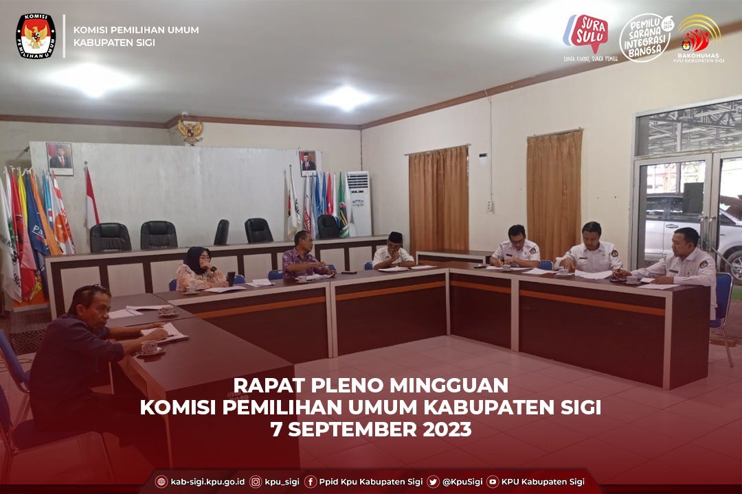 Sigi, kab-sigi.kpu.go.id Komisi Pemilihan Umum Kabupaten Sigi melaksanakan rapat pleno mingguan diruang Aula Kantor KPU Kabupaten Sigi, Kamis (07/09/2023).