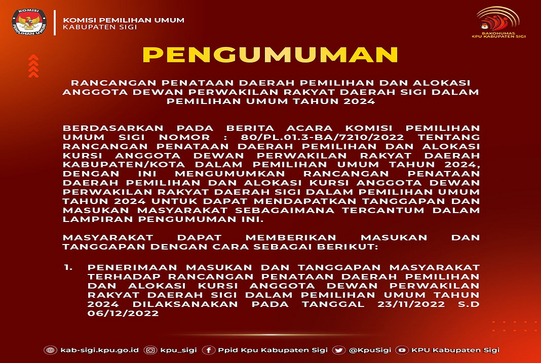 Sigi, kab-sigi.kpu.go.id – Sesuai dengan ketentuan Pasal 182 huruf p dan Pasal 183 Undang-Undang Nomor 7 Tahun 2017 tentang Pemilihan Umum, bakal calon perseorangan Peserta Pemilu Anggota DPD dipersyaratkan mendapatkan dukungan minimal dari pemilih di daerah pemilihan yang bersangkutan.